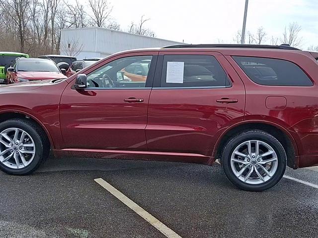Drive in style and confidence with this dark red 2023 Dodge Durango AWD GT Plus SUV. Powered by a robust Pentastar 3.6L V6 engine and an 8-speed shiftable automatic transmission, this Durango offers the performance and versatility you need. Enjoy the comfort of leather-trimmed upholstery, heated and ventilated front seats, a power glass moonroof, and spacious third-row seating for the whole family. Stay connected with a 10.1-inch Uconnect touchscreen, wireless Apple CarPlay and Android Auto, SiriusXM Guardian, and onboard Wi-Fi hotspot. Advanced safety features include adaptive cruise control, front and rear automatic emergency braking, blind spot monitoring, rear cross traffic alert, and a rearview camera. With convenient features like remote start, power liftgate, customizable digital instrument cluster, and multiple USB-C outlets, this Durango is ready for all your adventures. Towing is a breeze thanks to the Class IV trailer hitch and trailer brake controller. Don't miss your chance to own this feature-packed, stylish SUV-schedule your test drive today!