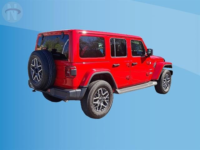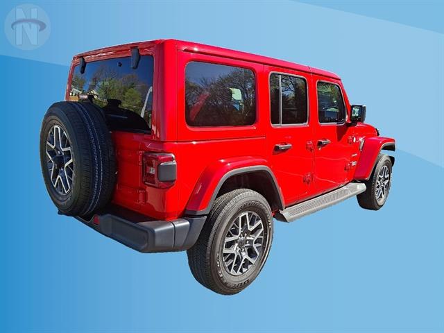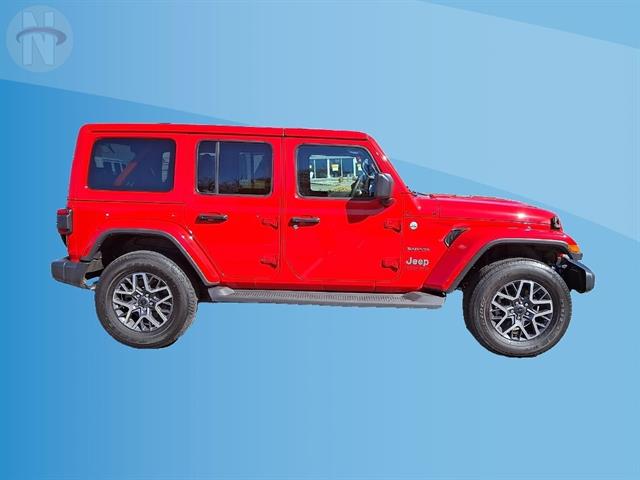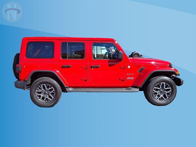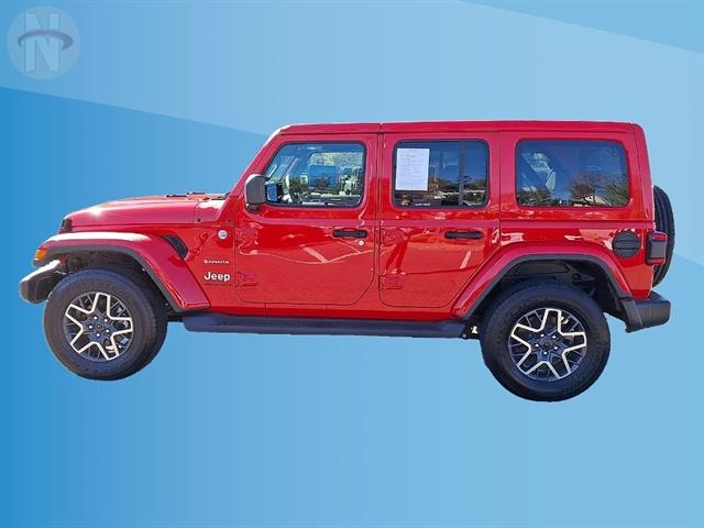 Discover adventure in this stunning Red 2024 Jeep Wrangler Unlimited Sahara 4x4. Built for both on-road comfort and off-road performance, it features a powerful 3.6L V6 engine paired with an 8-speed shiftable automatic transmission and Jeep's legendary 4X4 capability. Enjoy advanced tech like a massive 12.3-inch Uconnect infotainment screen with wireless Apple CarPlay and Android Auto, voice-activated controls, and SiriusXM Guardian smart device compatibility. Safety comes first with Adaptive Cruise Control, Front Automatic Emergency Braking, a rearview camera, and the Safety Group package. The Sahara trim adds stylish LED headlights, heated side mirrors, and side steps for easy entry. Inside, you'll find a leatherette-wrapped heated steering wheel, heated seats, ambient lighting, and ample cargo space with a rubber/vinyl cargo mat. Convenience features include push-button start, remote engine start, proximity entry, and multiple USB-C and USB power outlets. Stay connected on the go with built-in Wi-Fi hotspot. This Wrangler is ready for your next journey-visit us for a test drive today!