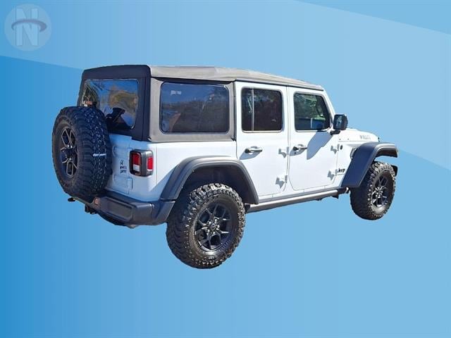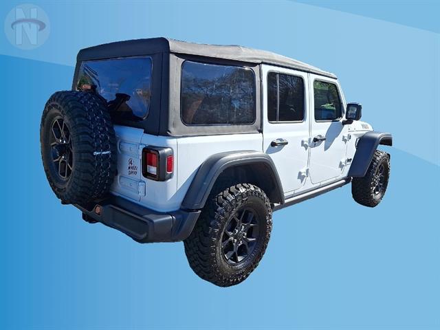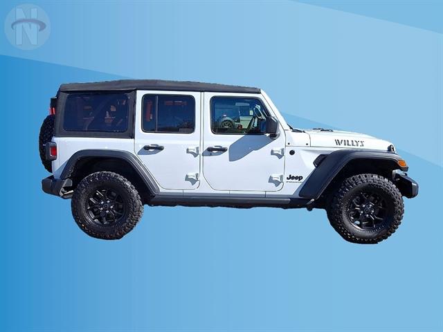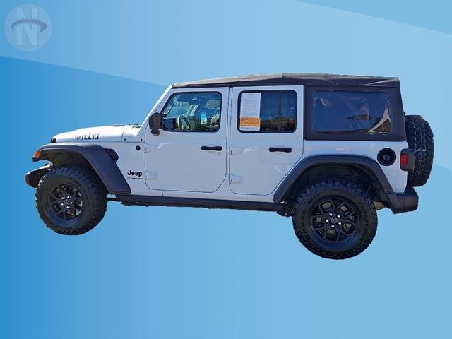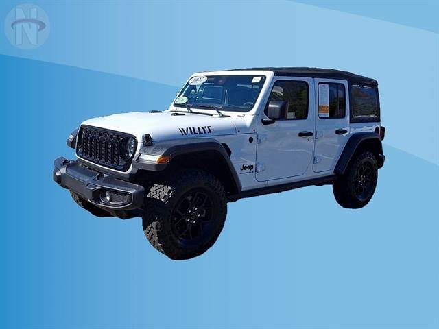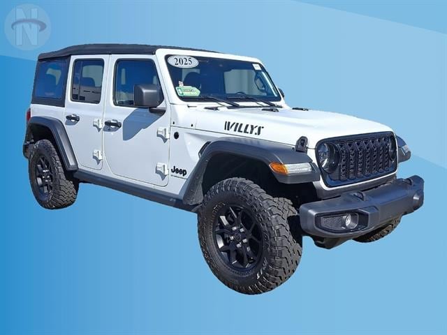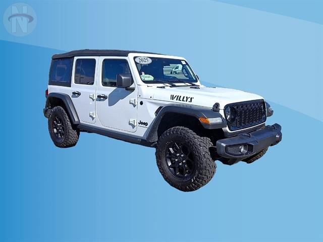 Experience adventure in the iconic 2025 Jeep Wrangler Unlimited Willys 4x4! Finished in classic white, this rugged SUV is built for both trail and city life with off-road tuned suspension, rear and front tow hooks, and a powerful 2.0L Turbo I4 engine paired to an 8-speed shiftable automatic transmission. Enjoy advanced connectivity with a 12.3-inch Uconnect touchscreen, wireless Apple CarPlay and Android Auto, Wi-Fi hotspot, and Jeep Connect smart device compatibility. Stay secure and confident with front automatic emergency braking, adaptive cruise control, and a rearview camera system. The interior features comfortable cloth bucket seats, rubber/vinyl cargo mat, and convenient push-button start. Whether you're heading off the beaten path or commuting daily, this Wrangler delivers legendary capability and modern tech in one rugged package. Visit us to take it for a spin and make it yours today!