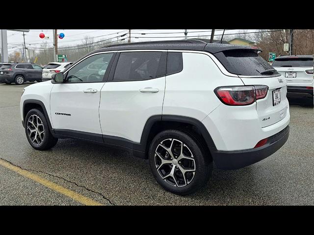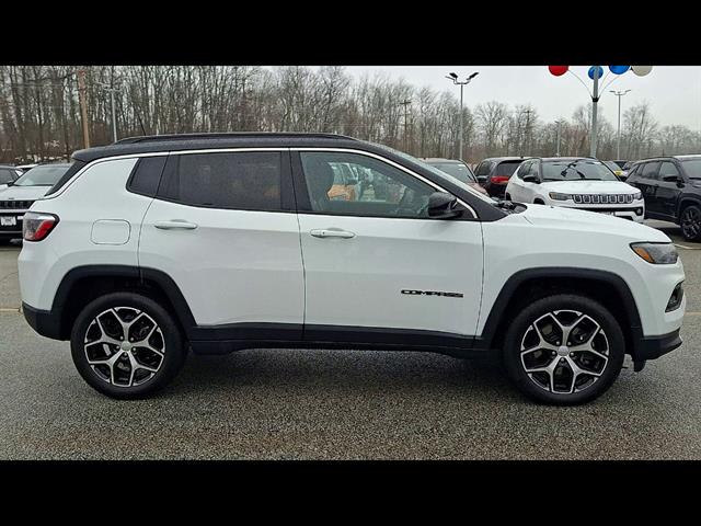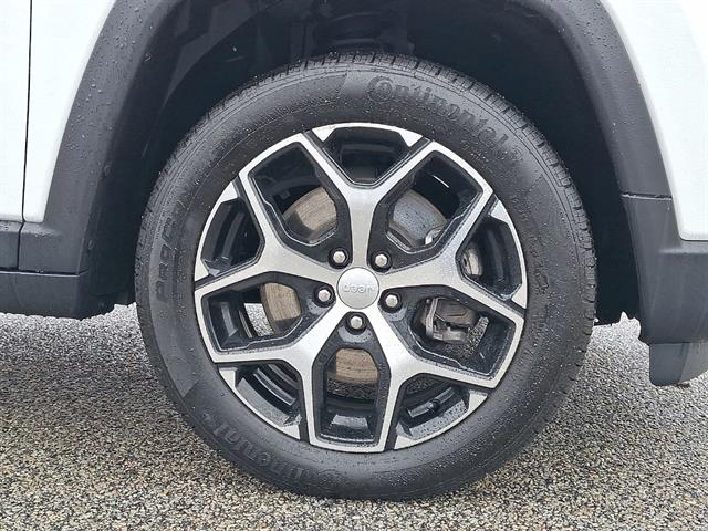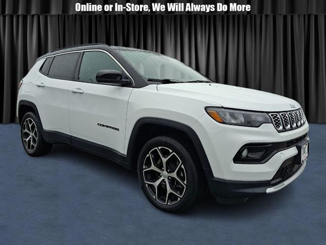 Experience style and capability in this White 2024 Jeep Compass Limited 4x4 SUV. Enjoy confident performance with its 2.0L Turbo I4 engine paired to an 8-speed shiftable automatic transmission and advanced 4x4 system. Stay connected and in control with a 10.1-inch Uconnect touchscreen featuring wireless Apple CarPlay and Android Auto, Amazon Alexa compatibility, and integrated Wi-Fi hotspot. Safety comes standard with adaptive cruise control, front and rear automatic emergency braking with pedestrian detection, lane keeping assist, blind spot monitoring, and rear cross traffic alert. The interior boasts heated leatherette seats, heated steering wheel, dual-zone automatic climate control, customizable 7-inch digital instrument cluster, and a premium look with ambient lighting and chrome window trim. Convenience features include push-button start, remote engine start, power driver's seat with lumbar support, and a power liftgate. This Compass is ready for any road, combining modern tech, comfort, and legendary Jeep capability-perfect for your next adventure.
